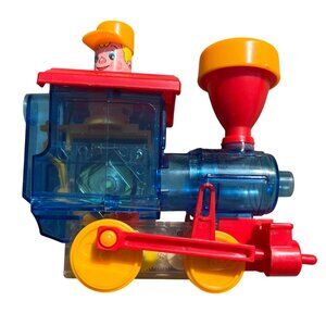 Vintage Blue Box Wind-Up Toot Toot Loco Toy Train With See-Through Body