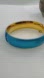 Vintage hollow painted enamel blue and gold tone hinged bracelet with safety chain.
