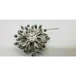 Here is an absolutely stunning atomic age set from Beau Jewels or Judy Lee, unsigned but both used this construction. Set with varying shades of blue AB rhinestones and bavette shaped moonstonedms for an exciting play of colors. Set in a light silvertone metal fikigree background, has arms or sprays that my appear from behind wirh accent rhinestones.
