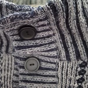 Two tone blue knit - dark blue at the bottom half and a marled blue & white at the top.