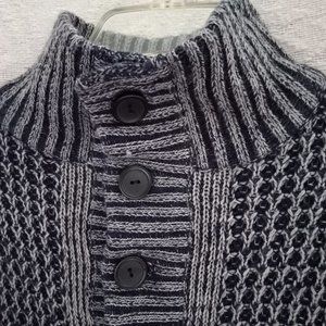 Vintage Blue Cable Knit Thick Button Down Turtleneck Sweater.