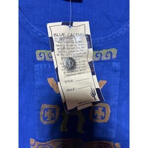 Vintage Blue Cactus Maxi Dress Linen Southwestern Painted NEW Dead Stock Buttons
