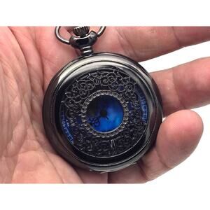 Embrace the wonder of the cosmos with this celestial blue pocket watch, featuring a stunning blue dial set against silver filigree. Ideal for astronomy enthusiasts and those captivated by the night sky, this watch melds artistic design with practicality.