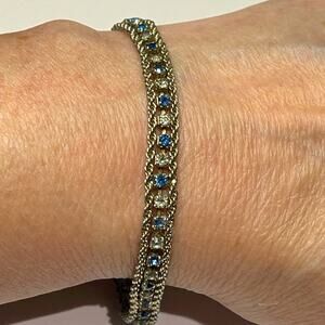 #VintageJewelry #TennisBracelet #BlueCrystal #RhinestoneBracelet #TripleStrand #SilverTone #VintageFind #SparkleJewelry #EveningStyle #RetroJewelry