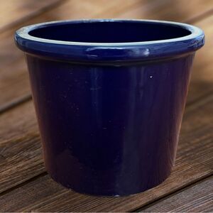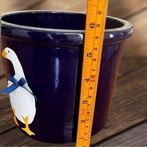 Vintage Blue Country Goose Decorative Jar Planter Pot. Blue Ribbon. Home Decor.