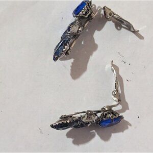 Vintage Blue Crystal Rhinestone Clip-On Dangle Earrings Estate
