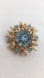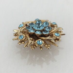 Vintage Blue Crystal Rhinestone Sunburst Cluster Brooch Pin Gold Floral Star Old