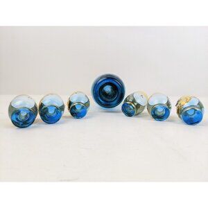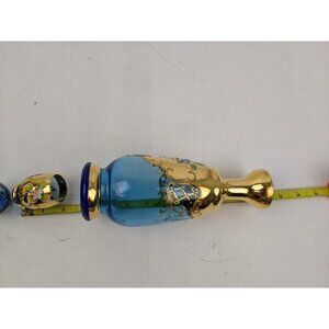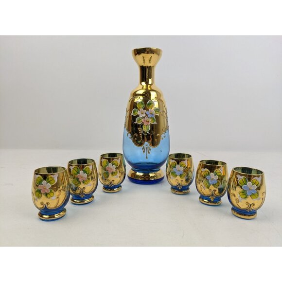 Vintage Blue Decanter & Stopper 6 glasses Made In Italy Venetian Murano gold
