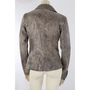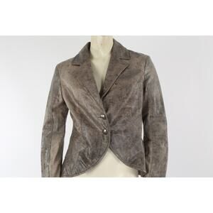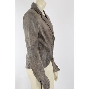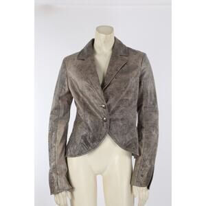 Vintage Blue Deep Gray Distressed Leather Button Blazer Jacket Size 42