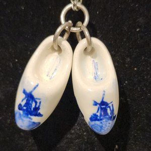 Vintage Blue Delft Porcelain Necklace/Dutch Clogs Pendant