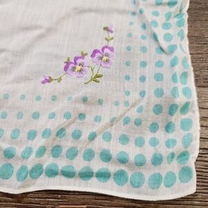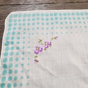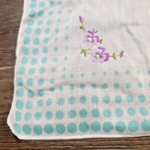 Vintage Blue Dot Purple Lilac Embroidered Square Handkerchief