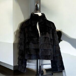 Vintage Blue Duck black rabbit fur ruffle coat Size women’s L
