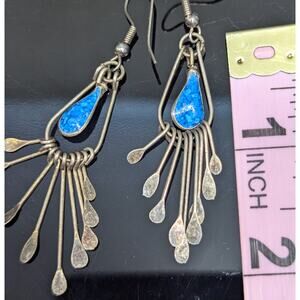 Vintage Blue Earrings Silver-tone Dangle Metal Fringe 2" in length A0023