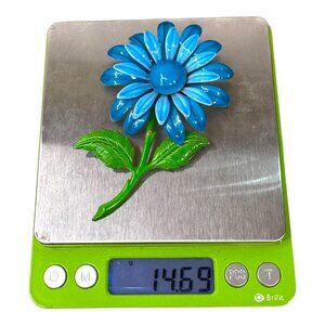 A stunning vintage flower brooch that transforms any outfit from ordinary to extraordinary. This meticulously crafted piece captures light with its glossy blue enamel petals, creating a vibrant statement that draws the eye and elevates your ensemble with timeless elegance.