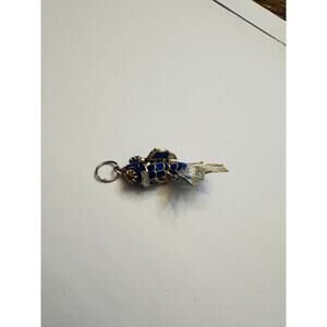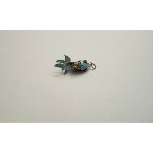 Vintage Blue Enamel Koi Fish Pendant Articulated Gilded