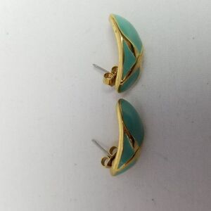 Vintage Blue Enamel and Gold Tone X Design Stud Earrings, 80s 90s Style