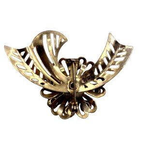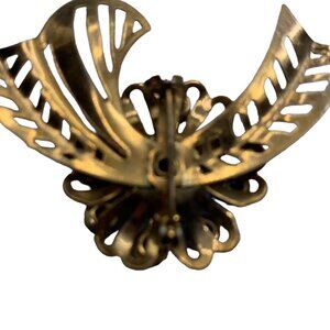 Vintage Blue Faceted Flower Gold Tone Fashion Brooch Pin Open Work Round Stones