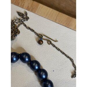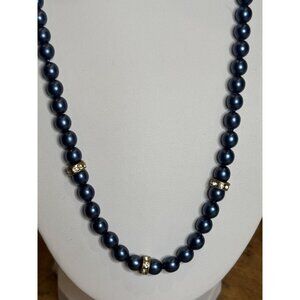 This elegant necklace features rich blue faux pearls accented with rhinestones. The adjustable hook clasp ensures a comfortable fit for various neck sizes.