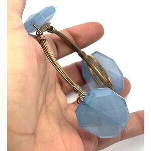 Vintage Blue Faux Stone Wrapped Wire Bangle Bracelet B18