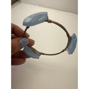 Vintage Blue Faux Stone Wrapped Wire Bangle Bracelet B7. I have lots of vintage jewelry listed . I have been selling items for more than 10 years online. I sell on multiple sites so make an offer if interested. I combine shipping