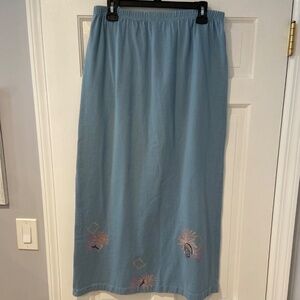 Vintage Blue Fish 100% Cotton Hand Painted Long Skirt Small (Size 1)