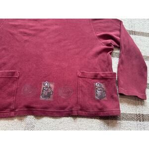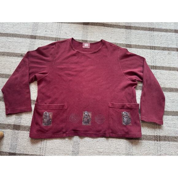 Vintage Blue Fish Women’s Thermal Coffee Red Crop Shirt 2 Large 3/4 Art To Wear