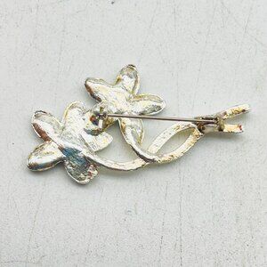 Vintage Blue Floral Bouquet Pin Silver Tone Glittery Enamel Rhinestone Center