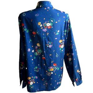 Vintage Blue Floral Button-Up Shirt James Kenrob Dalton Womens Size 16 1X XL 70s