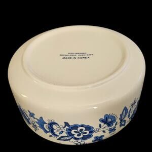 Vintage Blue Floral Covered Bowl w/ Lid Made in Korea Stoneware Kitchenware