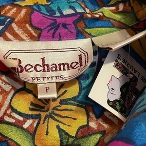 Vintage Blue Floral Cropped Short Sleeve Blouse by Bechamel Petite Size Small