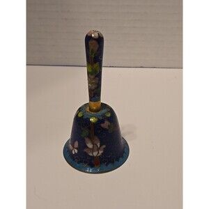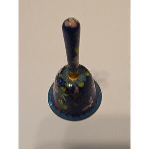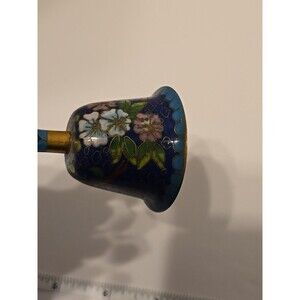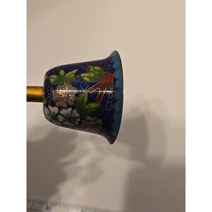 This vintage blue floral enamel brass cloisonné bell is a decorative collectible measuring 3.5 inches. The bell features a beautiful multi-color design, showcasing intricate floral patterns.