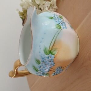 Vintage Blue Floral Forget-me-not Lidded Sugar Creamer Set Gold Gilt Bavaria