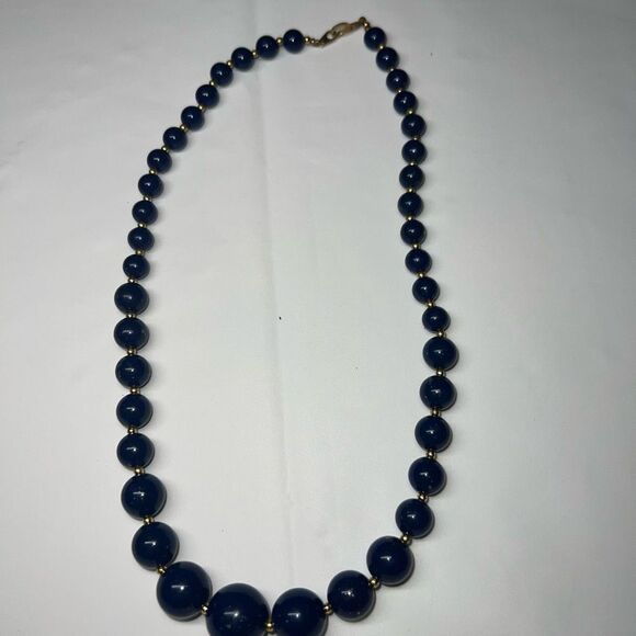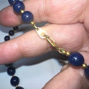 Vintage Blue Glass Bead with Gold Tone Chain Necklace Gorgeous, heavy and old. MCM vintage
