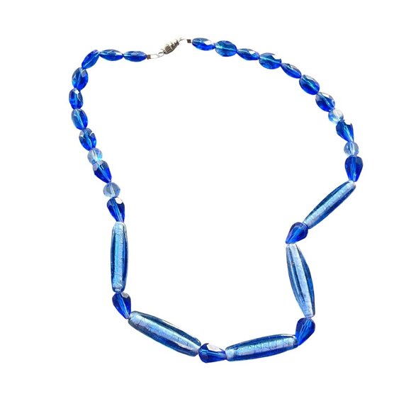 Vintage Blue Glass Beaded Necklace With Magnetic Clasp 1970s