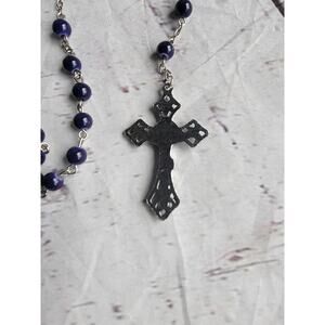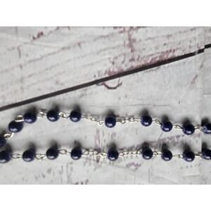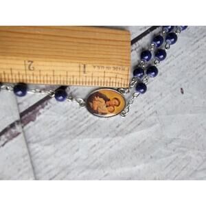 Vintage Blue Glass Silver Tone Rosary Infant Christ St Anthony prayer Beads in good condition