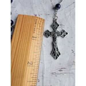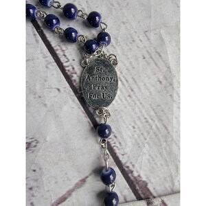 Vintage Blue Glass Silver Tone Rosary Infant Christ St Anthony prayer Beads