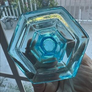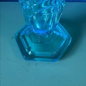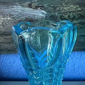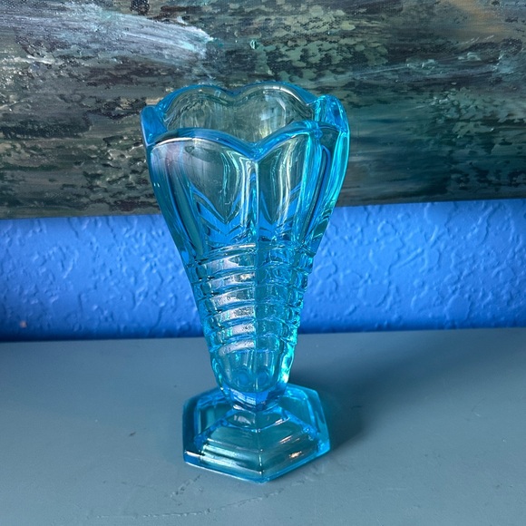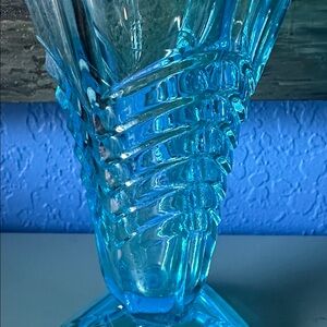 Elegant vintage glass vase in a striking blue color. Perfect for home decor or as a centerpiece.