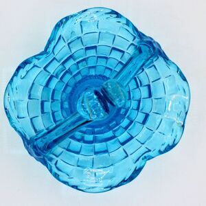 Vintage Blue Glass Weave Basket Pressed with Ruffled Scalloped Edge Split Handle
