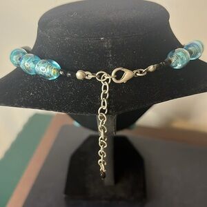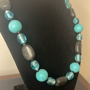 Vintage Blue Glass and Black Stone Beaded Chunky Necklace