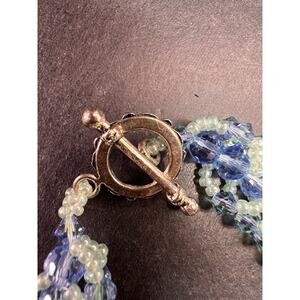 • Materials: Crystal Bicone Beads (Blue/Aquamarine), Glass Seed Beads, Silver-Toned Base Metal