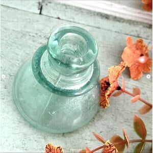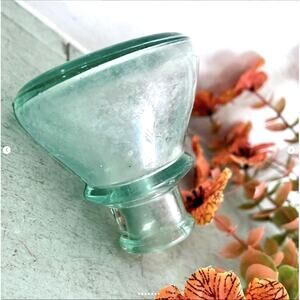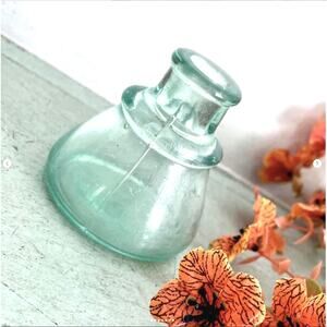 Vintage Blue Green Glass Ink Bottle Inkwell