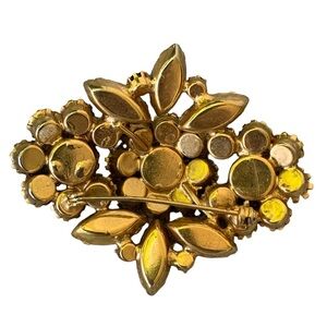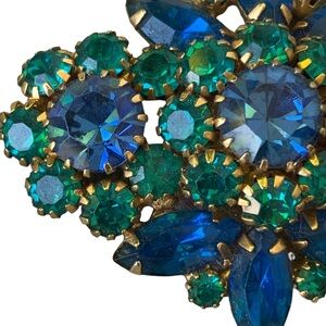 Vintage Blue Green Rhinestone Brooch Large Size Glam Mid Century