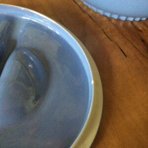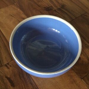 Excellent vintage condition. Blue pottery by Hall China Co. for Montgomery Ward Co. Covered casserole. Bottom of lid has a small dot of missing paint see pictures.