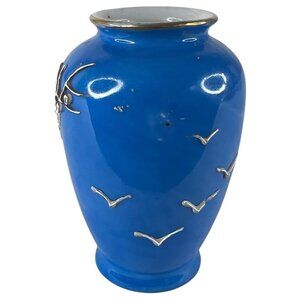 This intricately designed vintage Japanese vase features vibrant blue color with elegant floral and bird motifs. Its timeless craftsmanship adds a touch of sophistication to any decor setting. Display it as a standalone piece or as part of a collection.