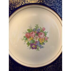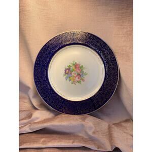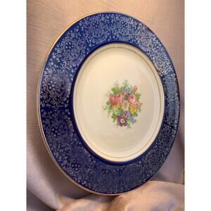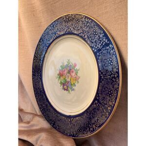 Vintage Blue Homer Laughlin 22k Gold Filagree Plate with Floral Pattern D40N5