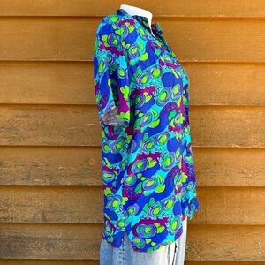 Vintage Blue Island Hawaiian Style Button Down Women’s Shirt Size M