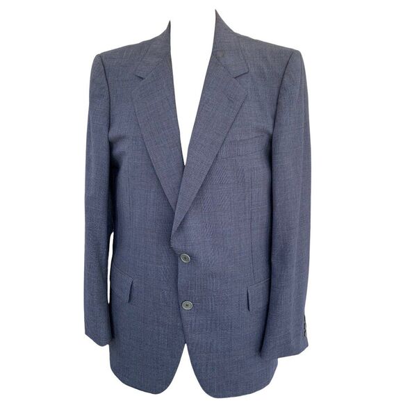 Vintage Blue Italian Suit Rayon Subtle Plaid Mens 40 34