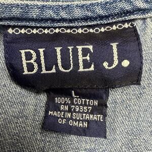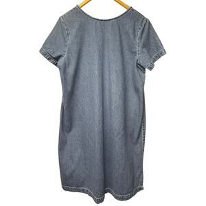 Vintage Blue J Denim Cotton Mini Dress Size Large Floral Appliques Short Sleeve