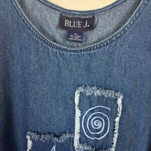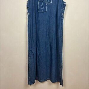 Vintage Blue J. Women's Denim Sleeveless Maxi Dress XL Patchwork Cottagecore