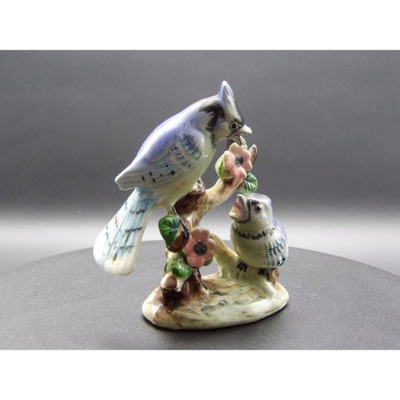 Vintage Blue Jay with Baby Figurine Marked "Blue Jar" 4" H x 3 1/2" W x 2" D